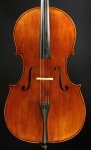 Flamed maple back, Italian spruce top, clean workmanship, lightly antique varnish expressing a tremendous quality in tone and appearance. Montagnana and Strad available. *Enhanced Set up with Tungsten Spirocore C, G and Larsen D, A strings.